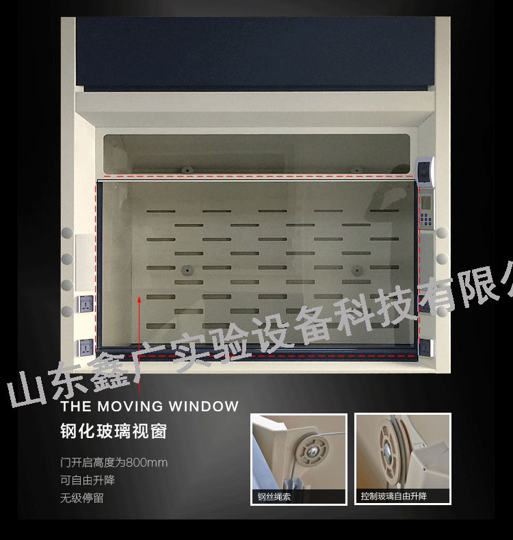 3、移動視窗:5mm優(yōu)質(zhì)鋼化玻璃,門開啟高度為700mm,自由升降,移門上下滑動裝置采用電梯配重方式結(jié)構(gòu),無級任意停留,移門導(dǎo)向裝置由抗腐蝕的聚氯乙稀材質(zhì)構(gòu)成。移門把手PP一體成型制作,移門旁邊是抗化學(xué)腐蝕的塑料包裹,移門的開、閉有橡膠緩沖裝置。